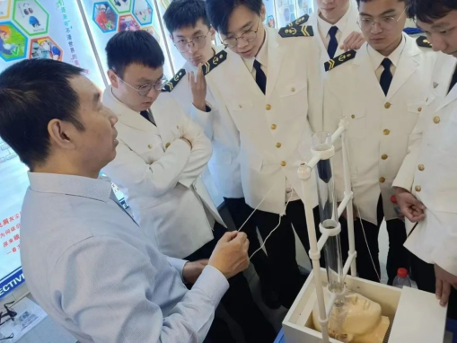 下午,同学们来到了公司的安全体感中心,在王红旗、孙宝珠两位资深船长的带领下进行安全培训。同学们分别就船员作业过程中安全操作方法、船舶设备的正确使用规则以及错误操作的危害等模块,进行了培训体验,互动互学的认知实践取得了良好的效果,激发了同学们学习知识,提升职业素养的热情。
