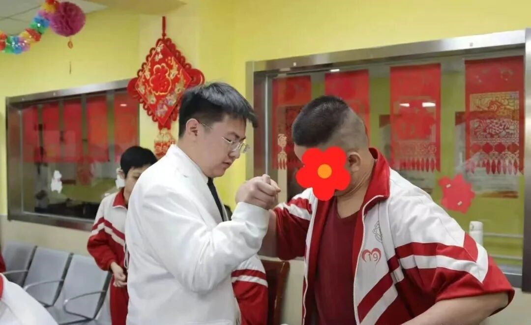 初入托养院,学生会成员们心中带着些许忐忑与期待,原本细微的陌生感,被孩子们一声声清脆真挚的“你好”轻轻化解。一张张纯真烂漫的笑脸,一双双主动伸出的小手,用最热烈、最纯粹的方式迎接每一位志愿者。这声简单的问候,恰似春日暖阳,瞬间照亮了现场每一个人,也让大家放下拘谨,俯身蹲下与孩子们平等交流、亲密互动,一场充满温暖与陪伴的爱心之旅正式启程。